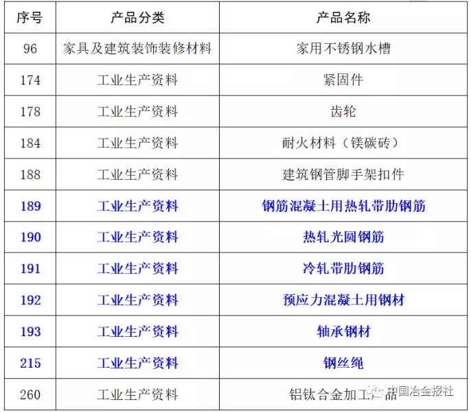 其中包括六種鋼材產(chǎn)品和部分鋼材相關(guān)產(chǎn)品(見下表)
