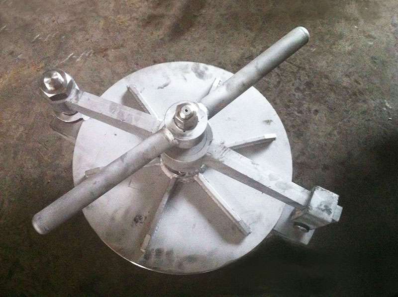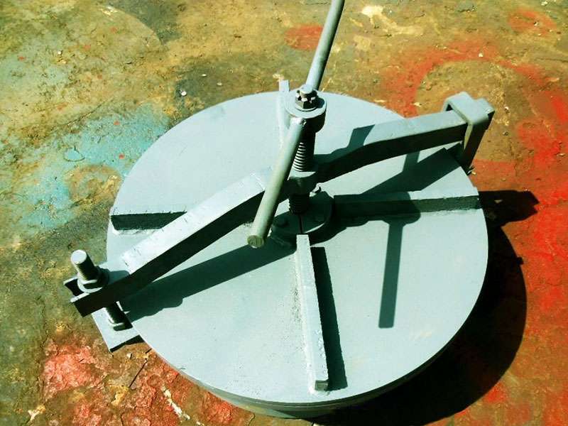 旋柄快開人孔即縮小的人孔,其安設(shè)是為了安裝、拆卸、清洗和檢修設(shè)備內(nèi)部裝置。 旋柄快開人孔的結(jié)構(gòu)基本相同,由一個短筒節(jié),蓋上一塊盲板構(gòu)成。旋柄快開人孔直徑一般為150~250mm,應(yīng)使工人戴上手套并握住工具的手能方便地通過,標準化旋柄快開人孔的公稱直徑有DN150、DN250兩種。當(dāng)設(shè)備公稱直徑大于或等于1000mm時,宜設(shè)置旋柄快開人孔。