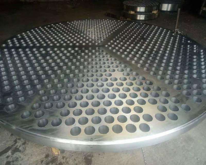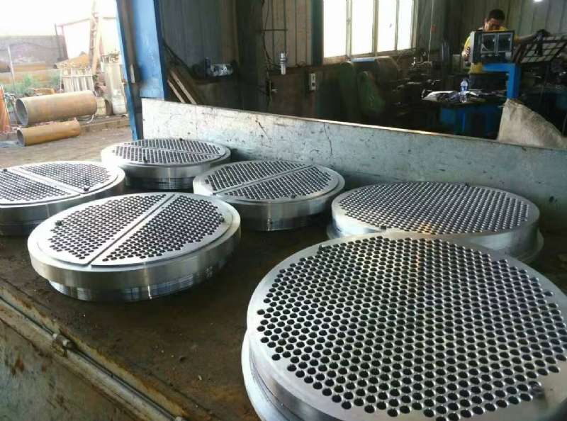 管板,就是在圓形鋼板上鉆出比管子外徑一樣略大一些的孔,是換熱器中起到固定管子以及密封介質作用的圓鋼。將管子穿入焊住固定,起這樣作用的一種配件。 管板加工的精度,特別是管孔間距和管徑公差、垂直度、光潔度都極大地影響著以上所列化工設備的組裝和使用性能。 在固定式管板的計算中
