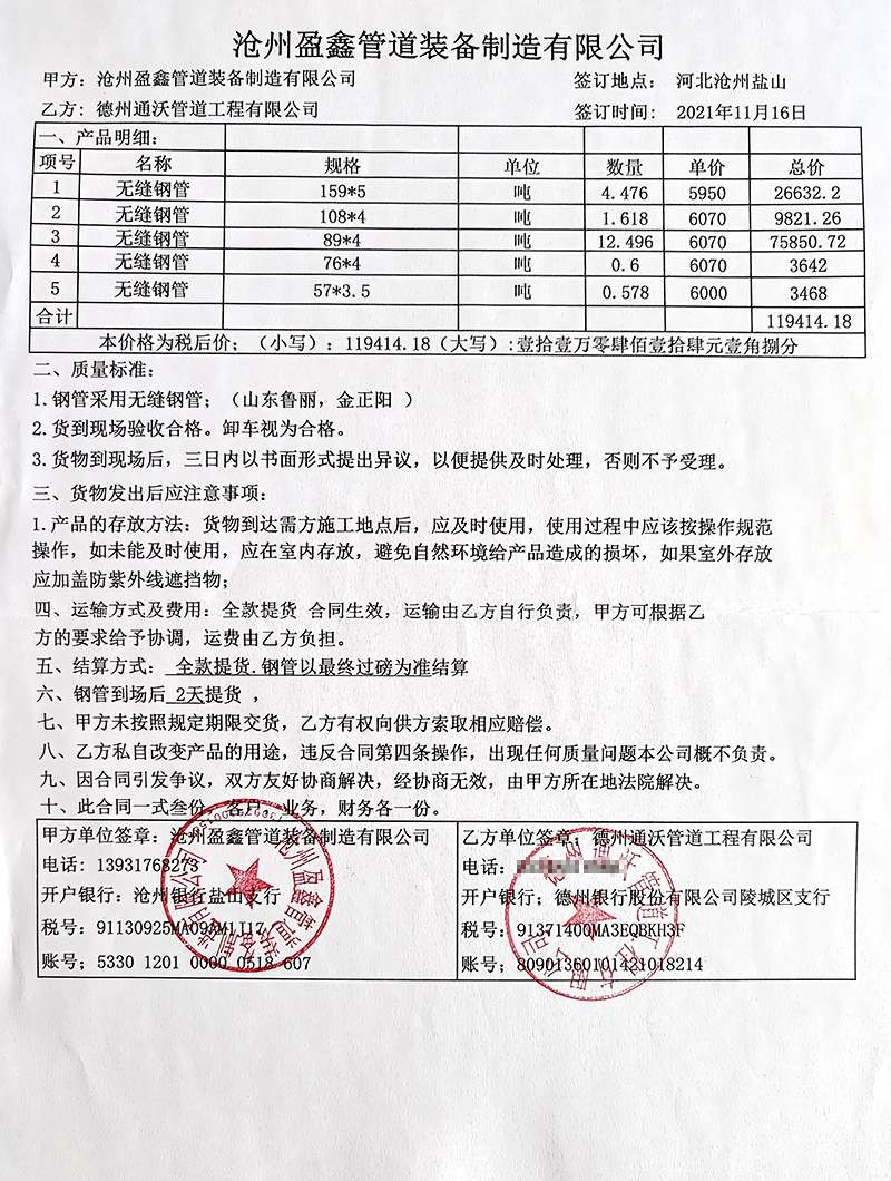 德州通沃管道工程有限公司與我公司達成管道采購項目合作